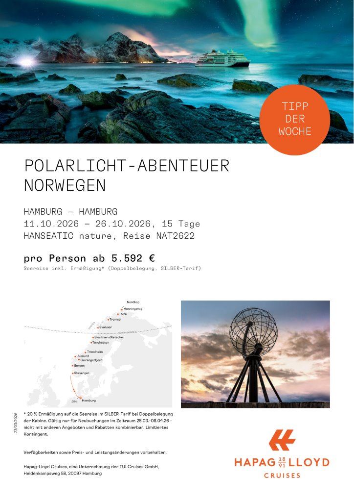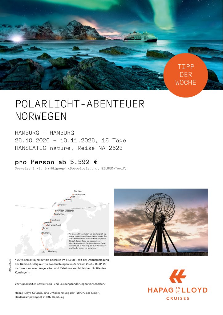 - drei Reisen ab Hamburg